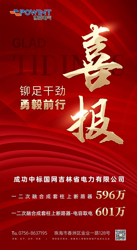 昂首闊步新征程,意氣風(fēng)發(fā)向未來!5月27日,博威電氣成功斬獲國(guó)網(wǎng)吉林省電力有限公司2024年新增第一次物資協(xié)議庫(kù)存項(xiàng)目,一二次融合成套柱上斷路器-電容取電601萬元,一二次融合成套柱上斷路器596萬元,合計(jì)中標(biāo)金額達(dá)1197萬。