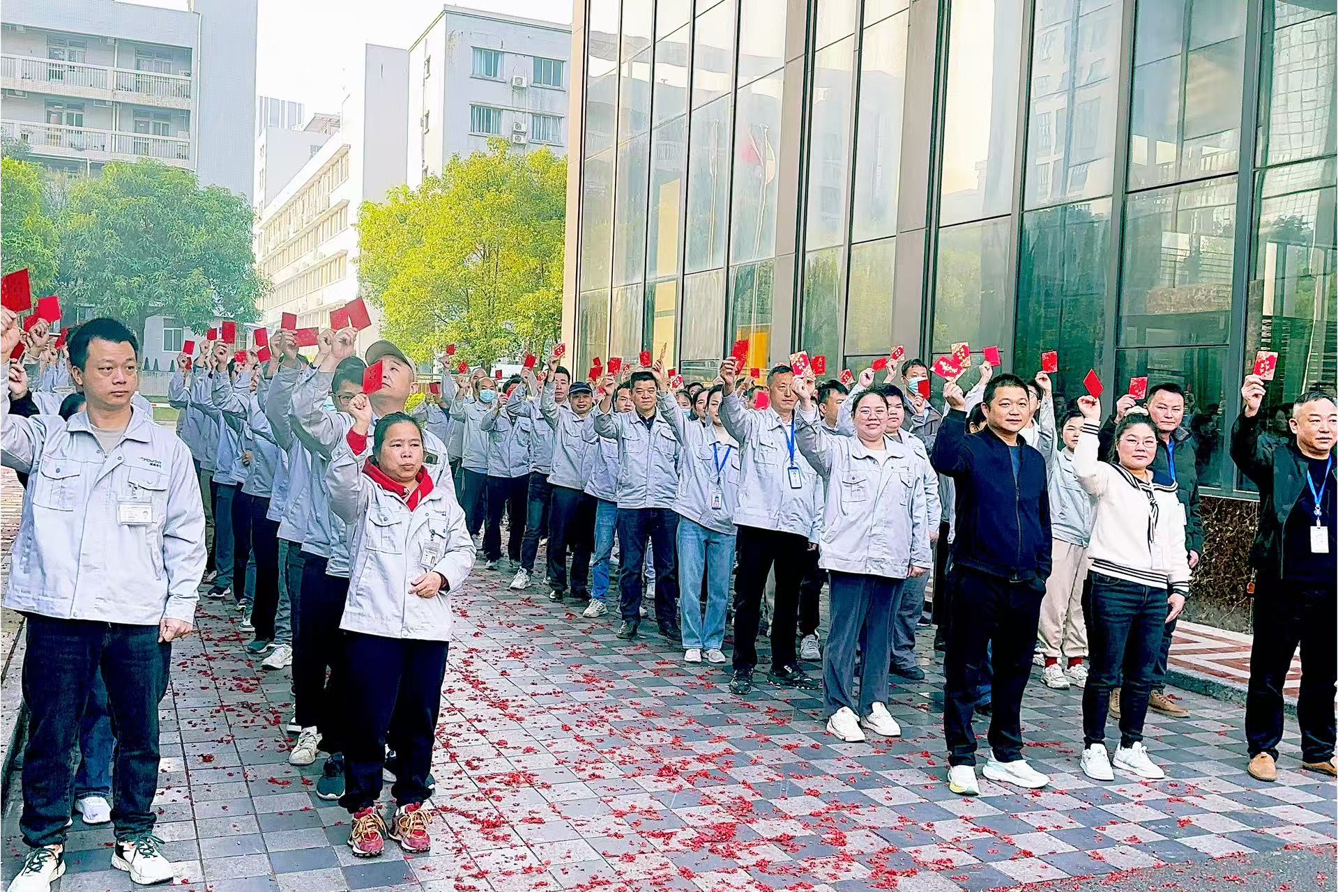 "每一道焊縫都是承諾,每項(xiàng)專利皆是戰(zhàn)書!"周迭輝董事長在禮炮轟鳴中,向奮戰(zhàn)全國各地的員工致敬。站在“中國智造2025”戰(zhàn)略新起點(diǎn)上,博威電氣將繼續(xù)深化技術(shù)研發(fā)體系,全面加速智能化升級(jí),憑借創(chuàng)新驅(qū)動(dòng)打造核心競爭力,將工匠精神貫穿每一個(gè)生產(chǎn)環(huán)節(jié)?,F(xiàn)場雷鳴般的掌聲中,周董特別宣布,公司已為全體員工準(zhǔn)備了開工利是,傳遞新春的祝福,激勵(lì)士氣,鼓舞人心,齊心協(xié)力譜寫企業(yè)高質(zhì)量發(fā)展的宏偉藍(lán)圖。