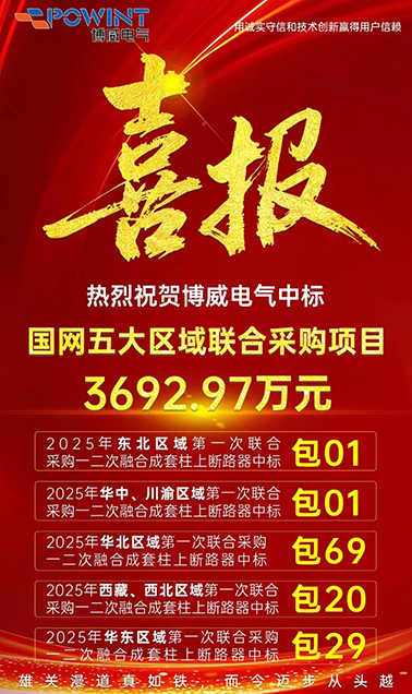 荷風(fēng)六月,捷報(bào)頻傳。在國家電網(wǎng)2025年華中川渝、華北、西藏西北、東北、華東區(qū)域第一次聯(lián)合采購項(xiàng)目中,博威電氣憑借行業(yè)領(lǐng)先的技術(shù)實(shí)力和卓越的產(chǎn)品性能,成功中標(biāo)一二次融合成套柱上斷路器產(chǎn)品。此次中標(biāo)實(shí)現(xiàn)了國家電網(wǎng)五大區(qū)域聯(lián)合采購項(xiàng)目的"大滿貫",總中標(biāo)金額達(dá)3692.97萬元。
