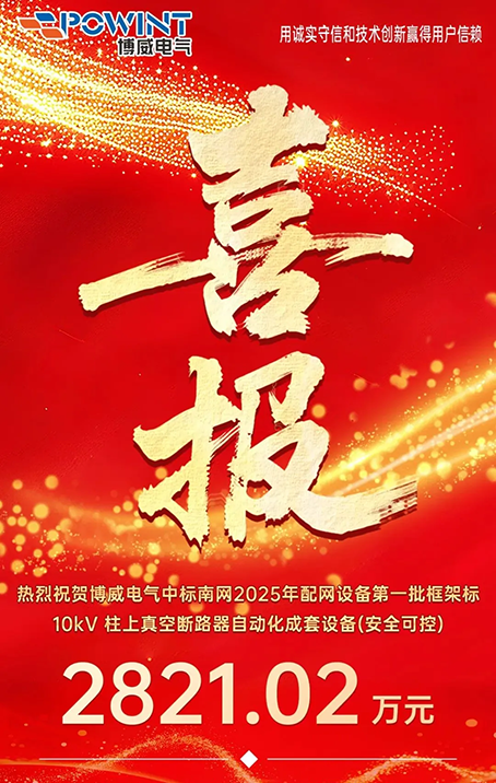 盛夏七月,博威電氣在南方電網(wǎng)2025年配網(wǎng)設(shè)備第一批框架招標(biāo)中再創(chuàng)佳績,成功中標(biāo)10kV柱上真空斷路器自動化成套設(shè)備(安全可控) 項目,金額達2821.02萬元。